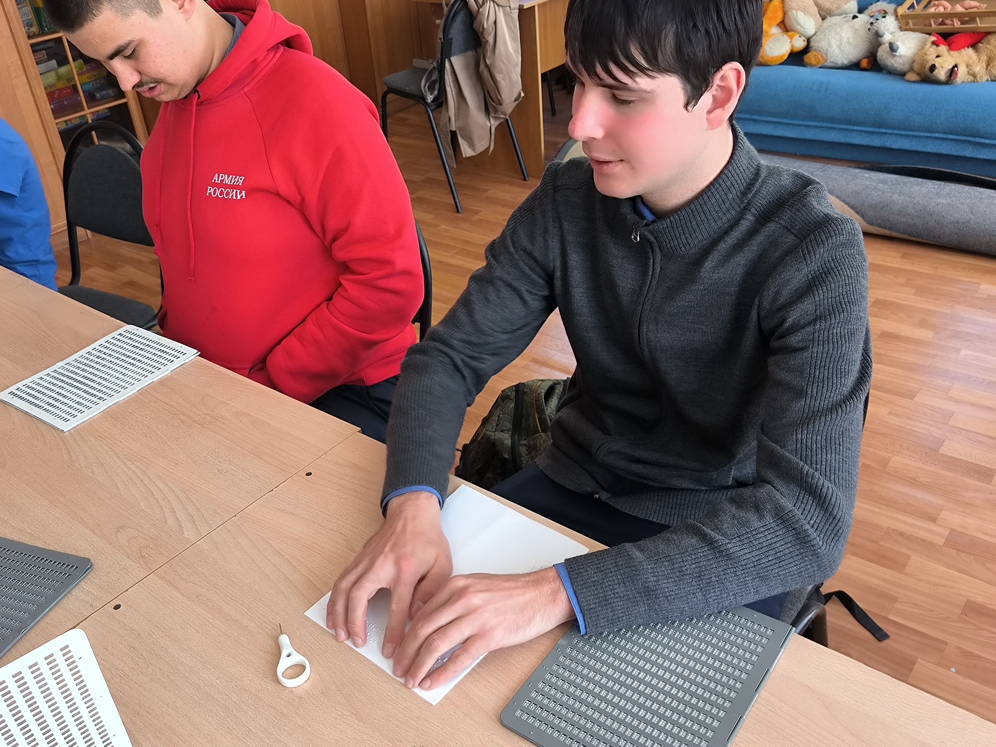С помощью шрифта Брайля, угадывали на ощупь предметы военной эпохи, пробовали себя в написании фронтовых писем-треугольников. Благодаря литературному материалу школьники с ключевыми моментами Великой Отечественной войны, героями-фронтовиками и примерами личного мужества советских солдат.
