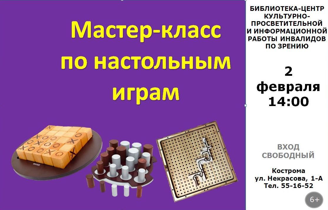 2 февраля 2025 года в 14:00 в библиотеке пройдет мастер-класс по настольным играм, адаптированным для людей с нарушением зрения!