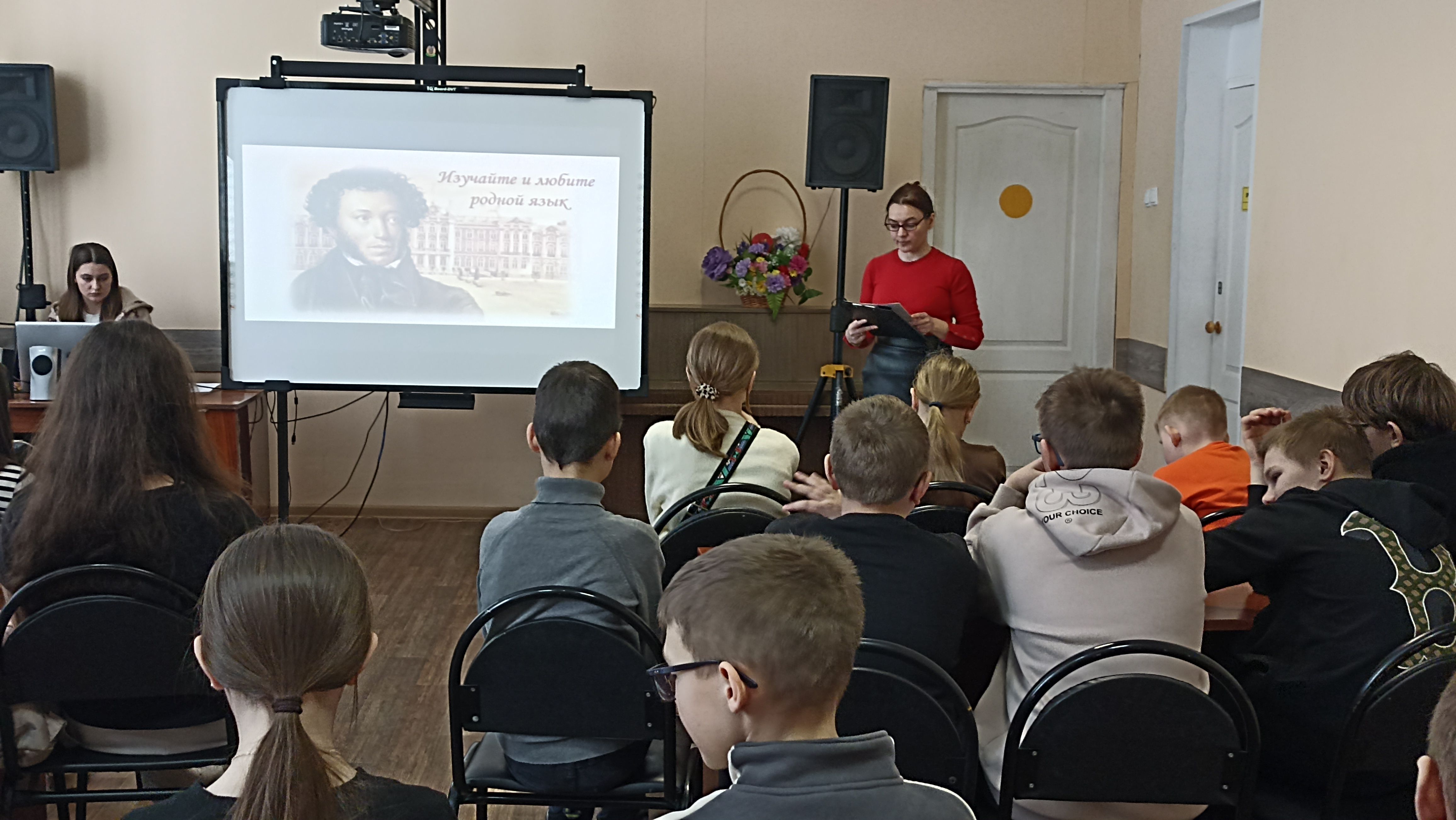 В ходе мероприятия вспомнили библейскую легенду о Вавилонской башне и смешении языков, поговорили о заимствованных и устаревших словах русского языка, посмотрели видеофрагмент разговора Ксандра и Эзопа из фильма «Эзоп» о языке.