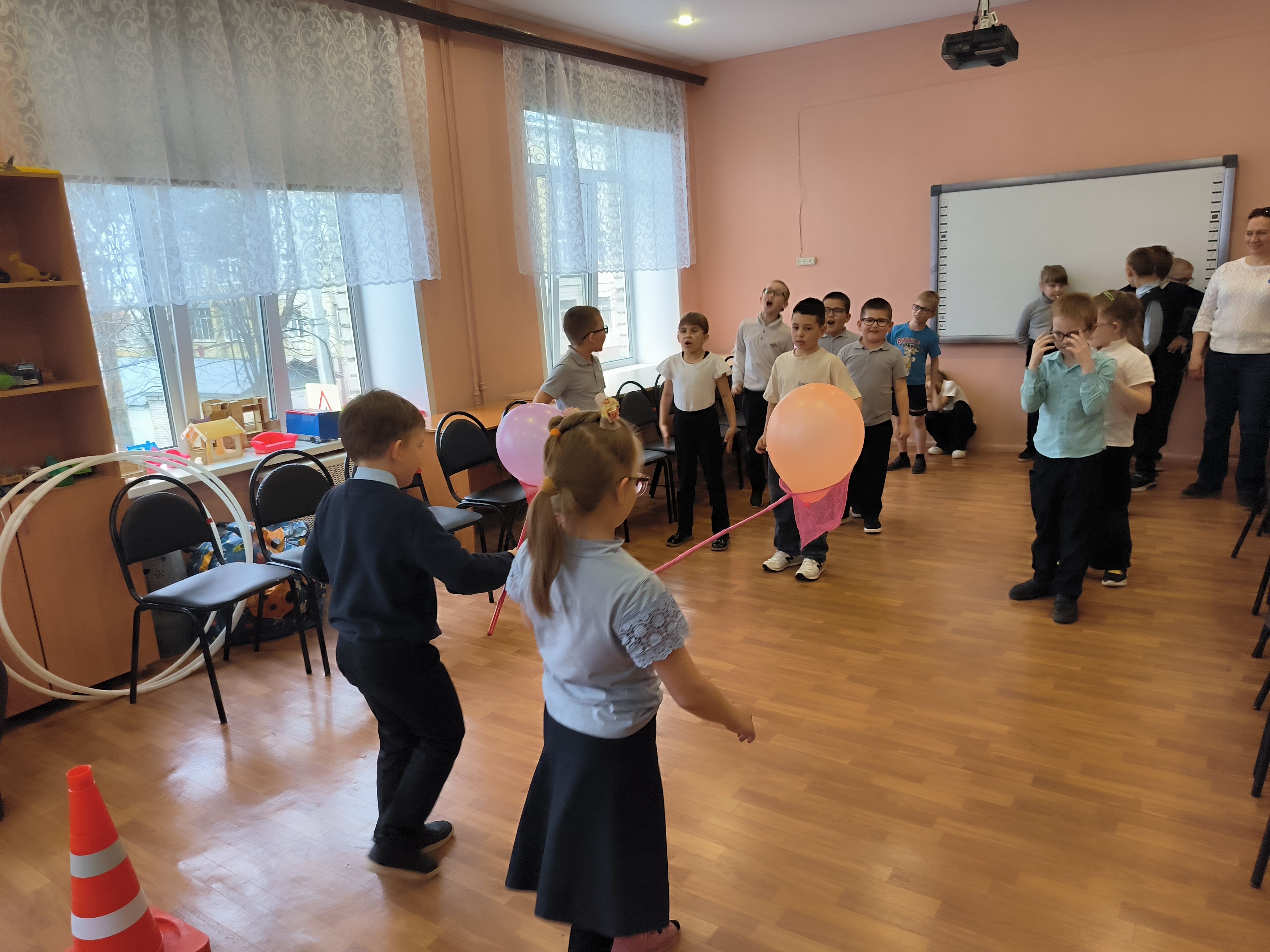 В игровой форме участники «совершили полёт на ракете», испытали невесомость, «высадились на неизвестную планету», запустили первый спутник и заселили её жителями, рисуя их фигурки на воздушных шарах.