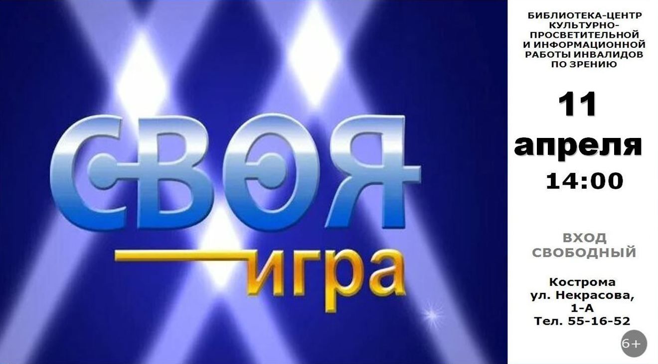 11 апреля 2024 года в 14:00 в библиотеке в рамках клуба «Интеллектуал» состоится познавательная игра-викторина «Своя игра»